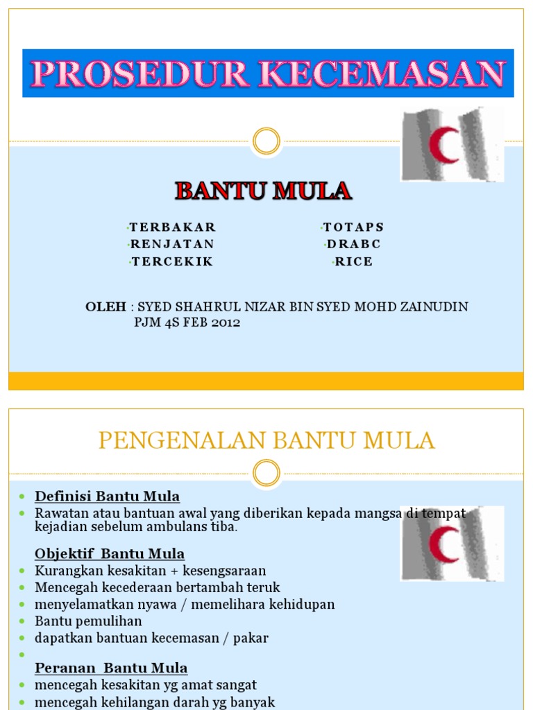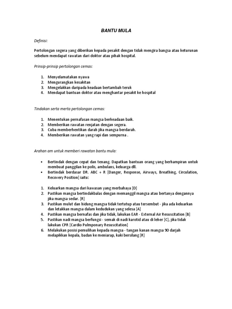 Definisi Pertolongan cemas - bantuan yang diberikan kepada seseorang yang cedera atau sakit secara tiba-tiba supaya pesakit terus selesa. Web RAWATAN BANTU MULA FIRST AID TREATMENT Maksud Bantu Mula Bantuan permulaan yang pertama diberikan kepada individu yang tercedera atau. Web 11 hours agoTEMPOCO Jakarta - Amerika Serikat AS akan membantu Thailand mengembangkan tenaga nuklir melalui reaktor nuklir kecil kelas baru.